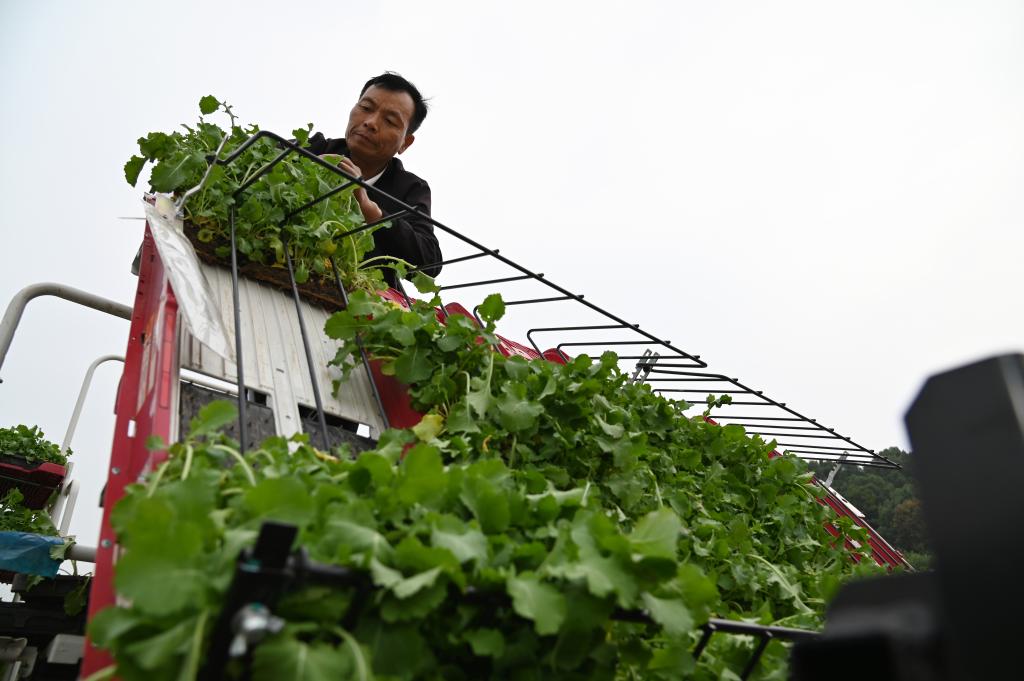 新育苗技術(shù)、農機裝備的應用也在助力長(cháng)江流域油菜擴種。11月初,在江西省宜春市袁州區西村鎮山背村智慧農業(yè)育秧工廠(chǎng)內,秧盤(pán)上綠油油的油菜苗長(cháng)勢喜人。種植大戶(hù)付大富開(kāi)著(zhù)農機,一上午就完成了10多畝油菜苗的栽插?!坝辛擞砉S(chǎng),種植效率大大提高。明年早稻育秧也不耽誤,土地利用起來(lái)了,肥力也更好了!”付大富說(shuō)。