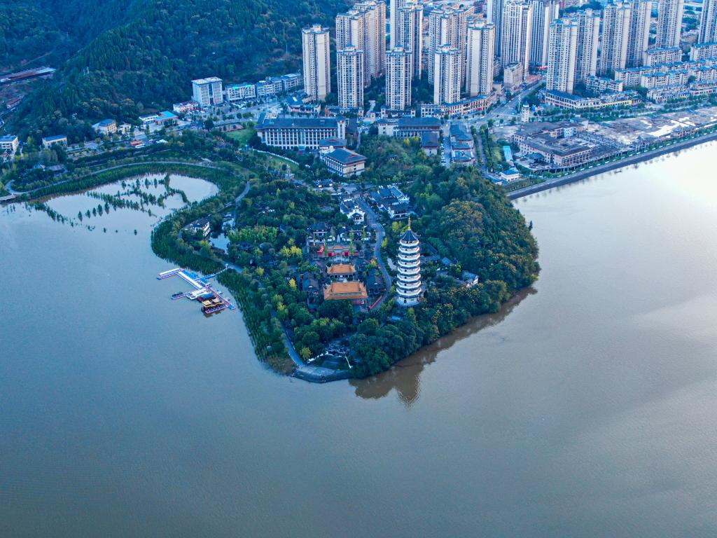為此,開(kāi)州在城區上游修建了一座水位調節壩,2012年下閘蓄水。自此,不管壩外潮漲潮落,開(kāi)州區消落帶水位始終保持基本穩定,形成了面積約15平方公里的“Y”字形人工湖——漢豐湖。