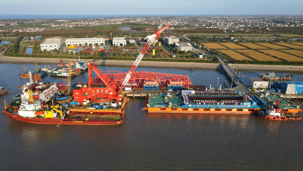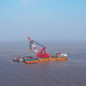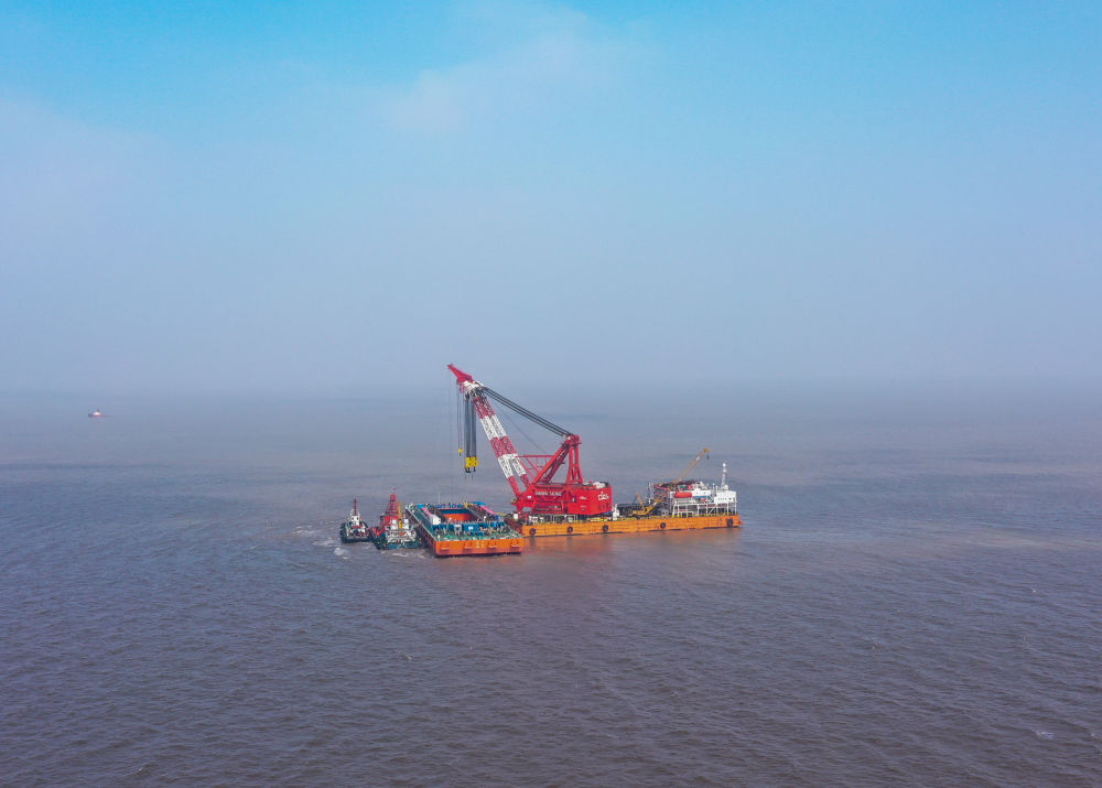 11月20日拍攝的長(cháng)江口二號古船整體打撈現場(chǎng)。