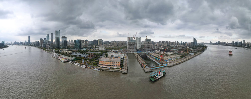 上海船廠(chǎng)舊址1號船塢已打開(kāi)閘門(mén),完成灌水,靜候長(cháng)江口二號古船(11月23日攝)。