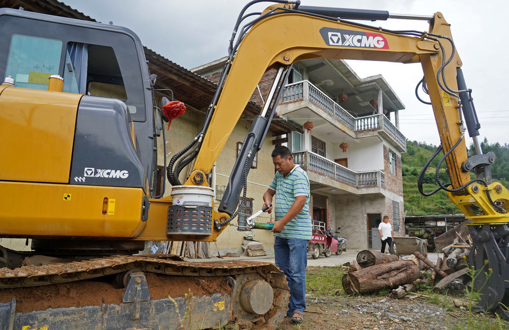 吳年有學(xué)會(huì )了開(kāi)挖掘機,在種田搞養殖的同時(shí),也會(huì )去建筑工地接活干,鄉里還讓他和妻子做起了村里的護林員和保潔員。