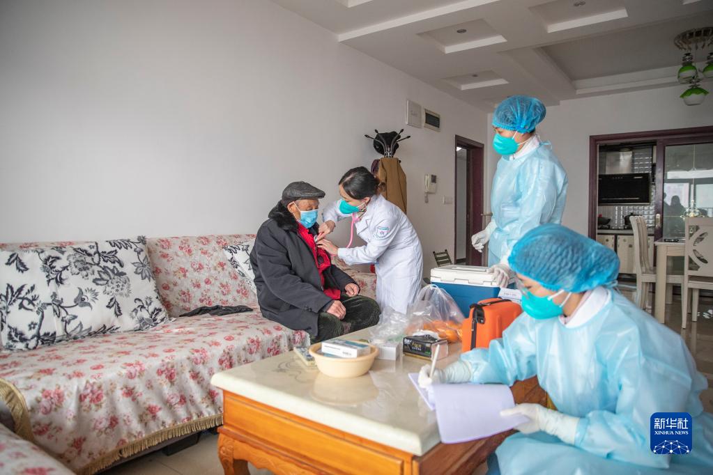 12月16日,在重慶市永川區中山路街道紅河路社區居民家中,流動(dòng)接種小分隊為接種疫苗的老年人做接種前的問(wèn)診和身體檢測。新華社記者 黃偉 攝