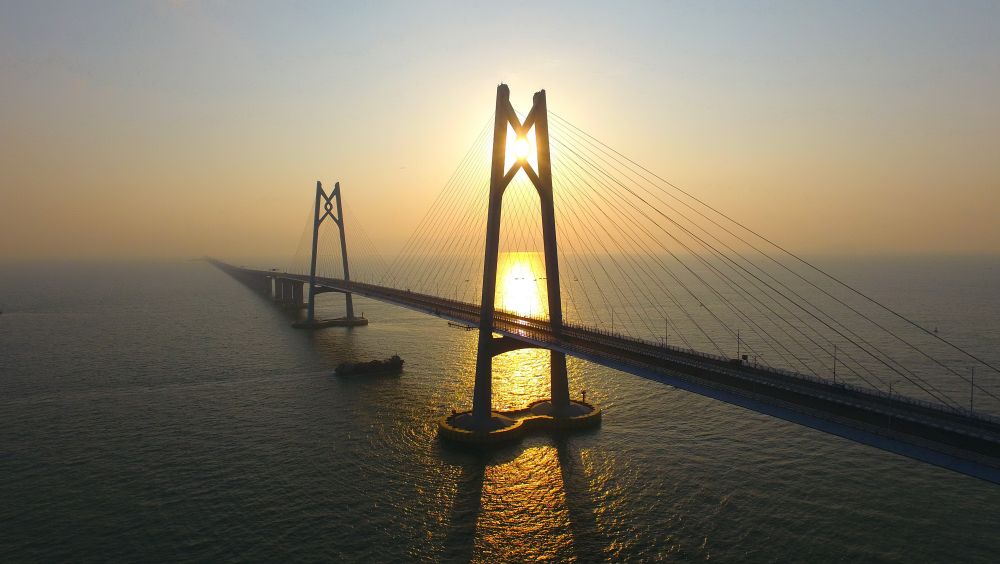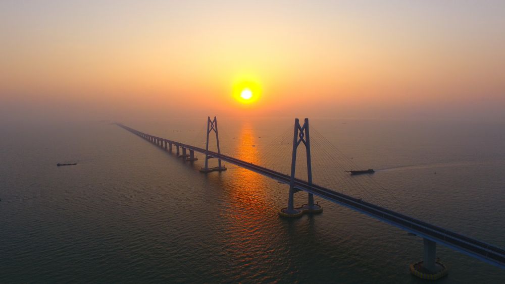 當我操作無(wú)人機飛行在浩瀚的伶仃洋上,從屏幕里看到一輪紅日躍出海面、金色的陽(yáng)光穿過(guò)“中國結”橋塔、長(cháng)橋臥波宛若蛟龍,內心的震撼無(wú)與倫比。