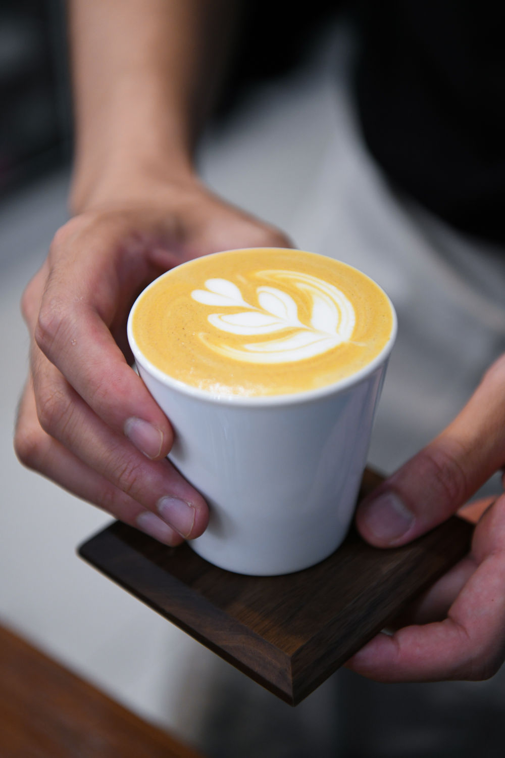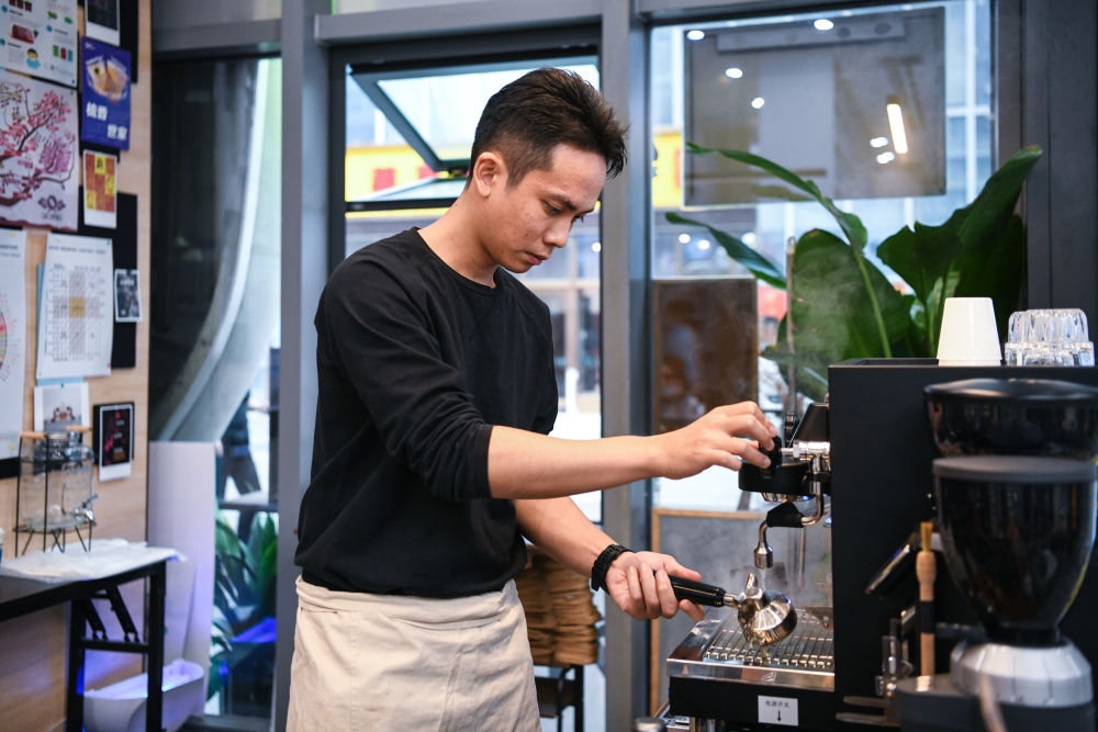 ↑ 2021年10月27日,唐震聲為客人制作咖啡。?