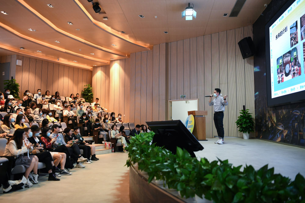 ↑ 2021年10月31日,在前海深港青年夢(mèng)工廠(chǎng)舉辦的分享會(huì )上,唐震聲在講述自己的咖啡創(chuàng )業(yè)故事。