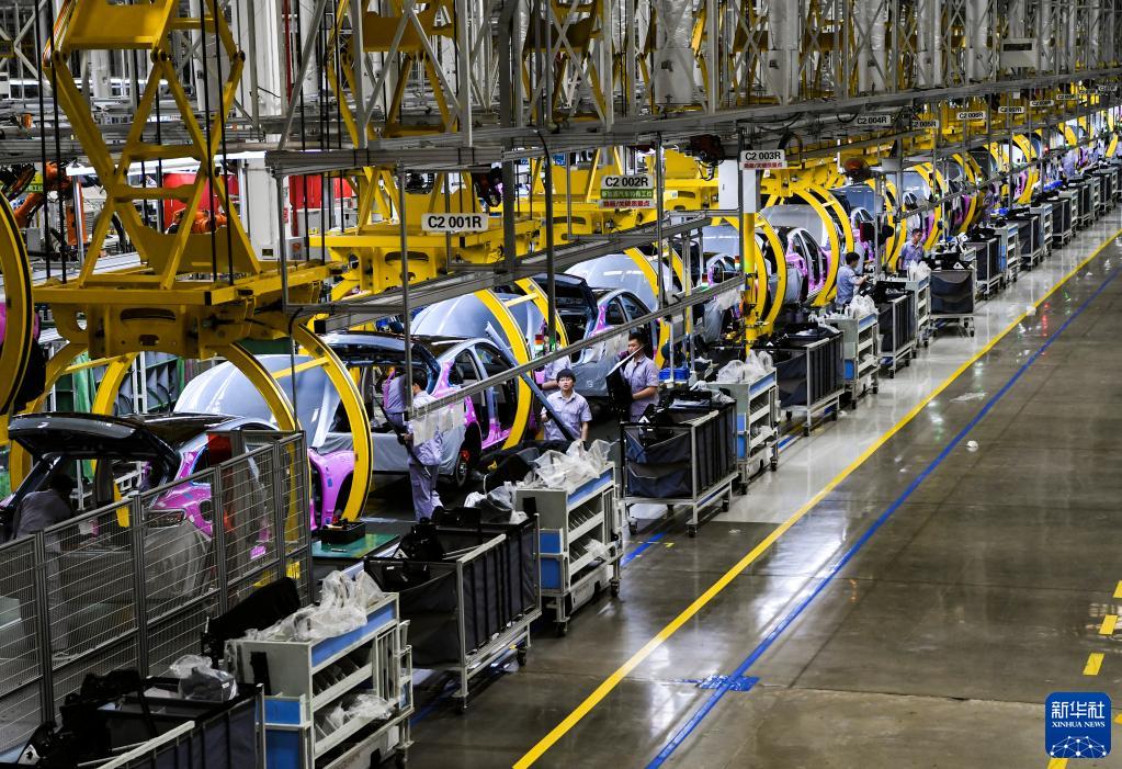 這是2022年6月27日拍攝的賽力斯汽車(chē)有限公司重慶兩江智慧工廠(chǎng)作業(yè)現場(chǎng)。新華社記者 王全超 攝