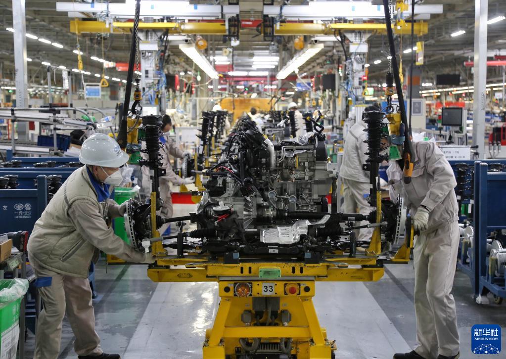在滿(mǎn)負荷運轉的一汽大眾汽車(chē)有限公司成都分公司車(chē)間,每小時(shí)有130臺新車(chē)下線(xiàn)(2022年12月15日攝)。新華社記者 楊進(jìn) 攝