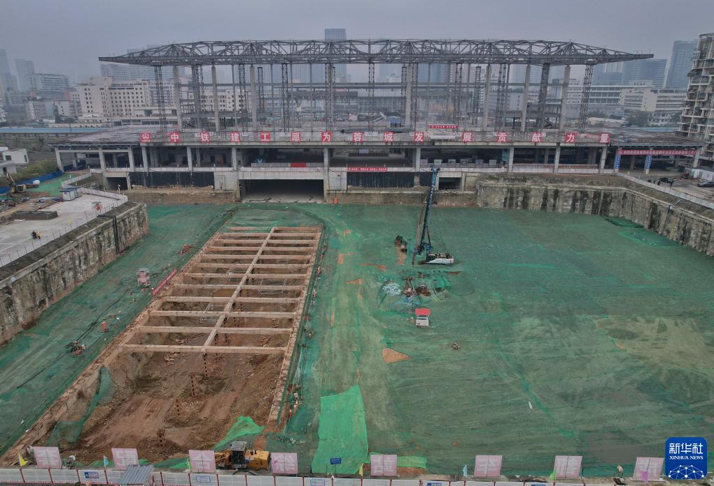 2022年12月15日,成都站擴能改造現場(chǎng),部分站房鋼結構搭建已經(jīng)完成(無(wú)人機照片)。新華社記者 楊進(jìn) 攝
