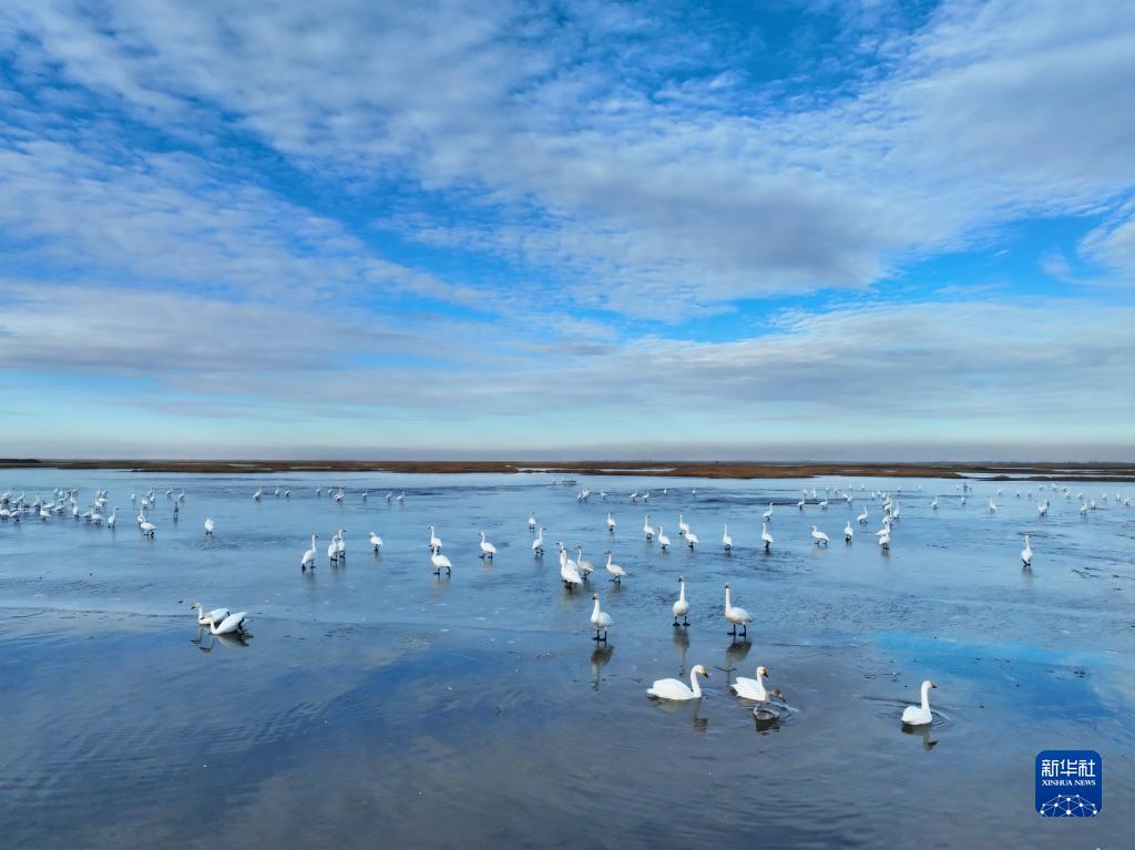 吉林省白城市鎮賚縣莫莫格濕地迎來(lái)大批候鳥(niǎo)(無(wú)人機照片,2022年11月6日攝)。新華社發(fā)(潘晟昱 攝)
