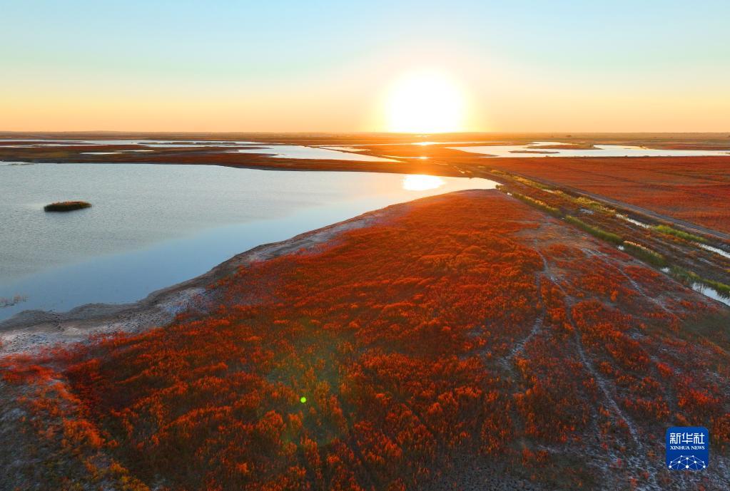 這是2022年9月21日拍攝的吉林省白城市鎮賚縣莫莫格濕地(無(wú)人機照片)。新華社發(fā)(潘晟昱 攝)