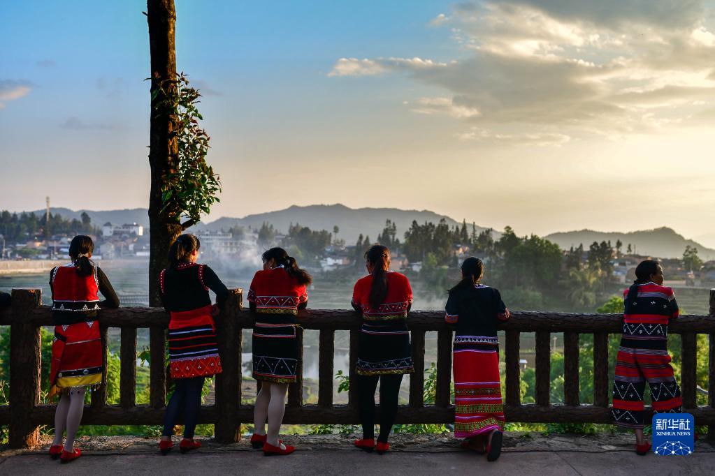 云南省騰沖市清水鄉三家村中寨司莫拉佤族村村民在廣場(chǎng)上休息(2020年5月15日攝)。新華社記者 胡超 攝