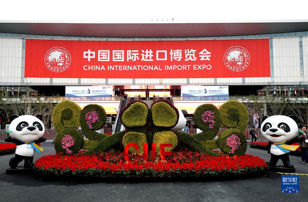 在國家會(huì )展中心(上海)場(chǎng)館外,進(jìn)博會(huì )吉祥物“進(jìn)寶”準備迎接四方賓客(2018年11月4日攝)。新華社記者 陳飛 攝