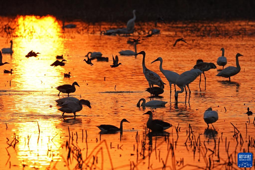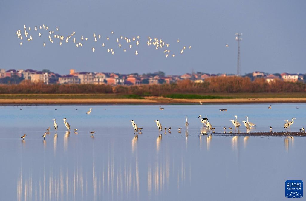眾多候鳥(niǎo)在江西鄱陽(yáng)湖南磯濕地國家級自然保護區的濕地棲息(2022年11月11日攝)。新華社記者 萬(wàn)象 攝