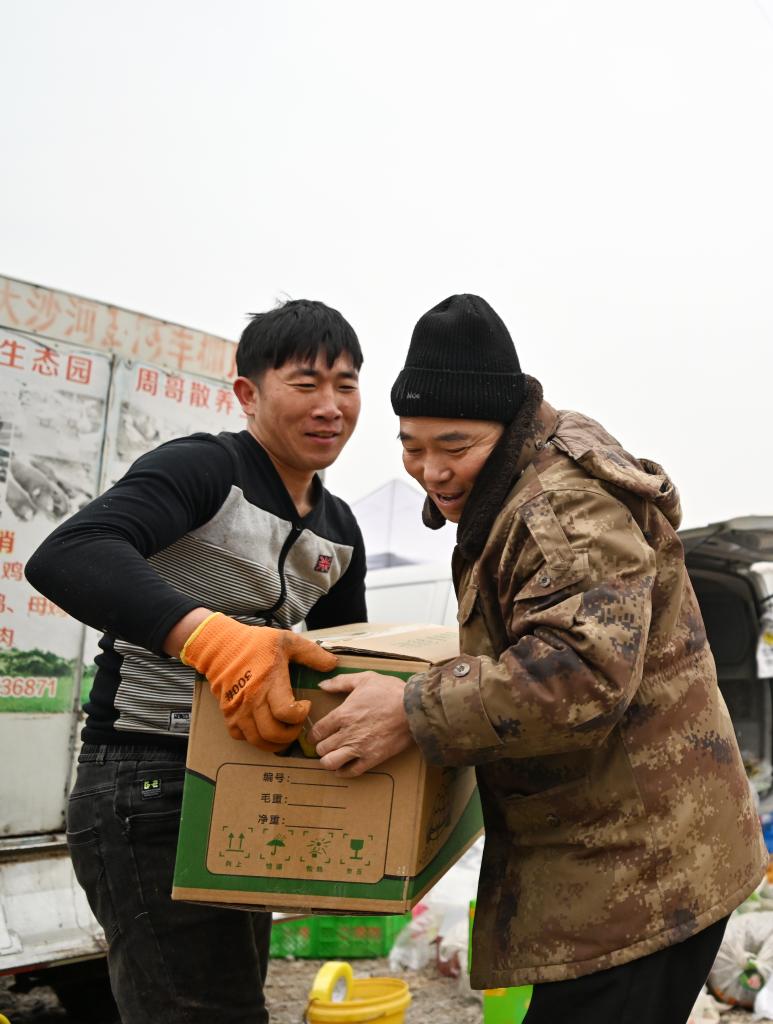 “商戶(hù)們有來(lái)自薊州各鄉鎮的,也有來(lái)自周邊的北京市、河北省的,固定攤位有300多個(gè),臨近春節,散攤更是一次比一次多?!蔽髀非f大集市場(chǎng)管理人員齊偉明熟絡(luò )地與商戶(hù)們打著(zhù)招呼。