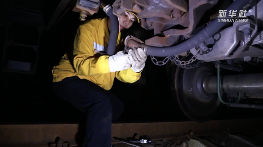 在編組場(chǎng)上,“車(chē)輛大夫”的工作就是給這些貨車(chē)進(jìn)行“體檢”,及時(shí)處理故障和排查安全隱患問(wèn)題,確保鐵路運輸大通道的安全。