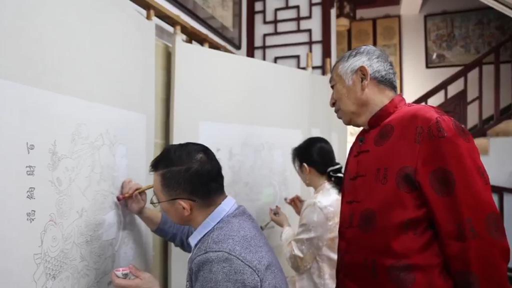 春節來(lái)臨,天津戶(hù)外寒風(fēng)料峭,千年古鎮楊柳青的畫(huà)坊里卻暖意融融。