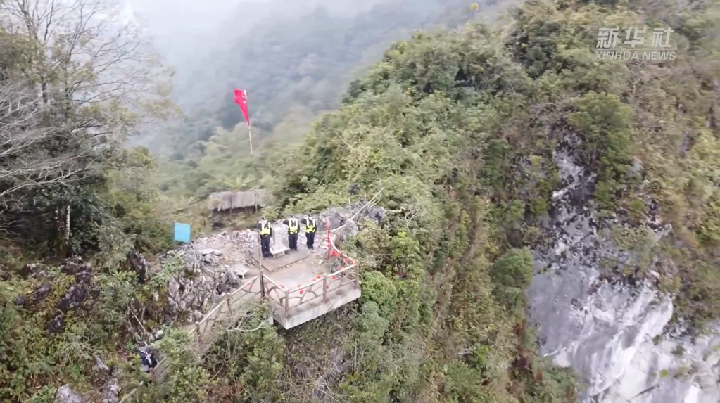 在廣西那坡縣邊境線(xiàn)上,588號界碑屹立在百南鄉紅石山1096米的懸崖之上,通往界碑的巡邊棧道如同“天梯”一般,緊挨著(zhù)懸崖絕壁曲折蜿蜒而上。