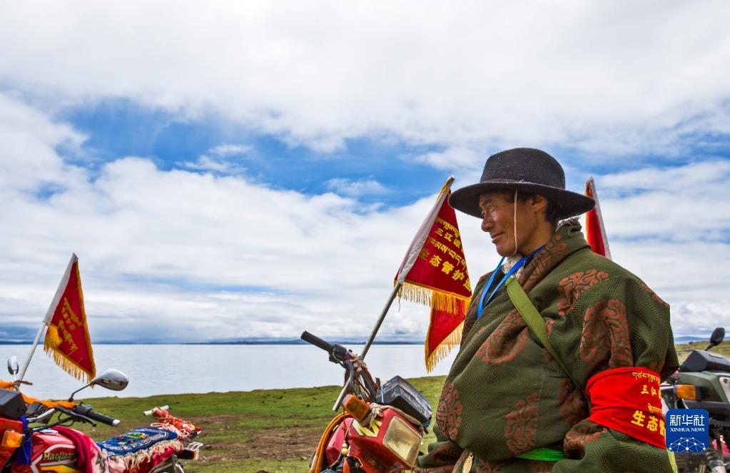 作為三江源國家公園的一名生態(tài)管護員,尼瑪扎西每天在放牧自家牛羊的同時(shí),也承擔撿拾垃圾、巡護湖泊草場(chǎng)、巡查和保護野生動(dòng)物等職責。