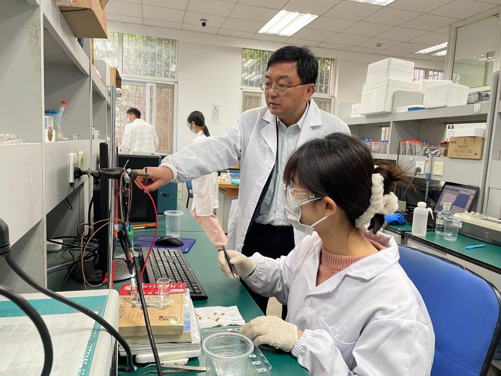 2月10日,藍閩波在華東理工大學(xué)的實(shí)驗室指導學(xué)生。新華社記者郭敬丹 攝