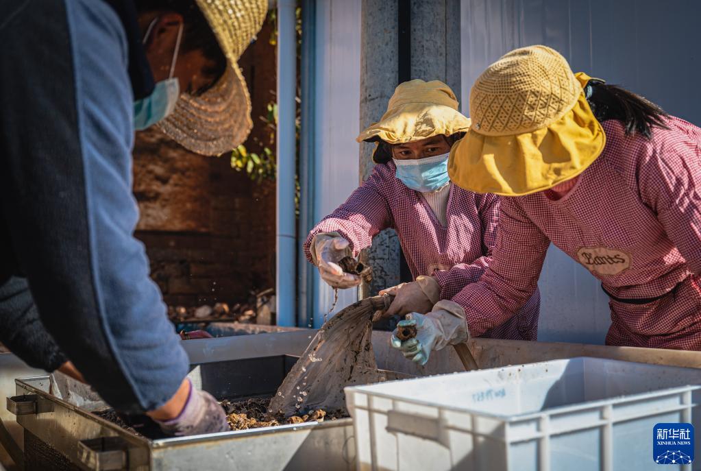 考古工作者將云南古城村遺址出土的文化遺物進(jìn)行分類(lèi)(2022年11月24日攝)。新華社記者 王冠森 攝