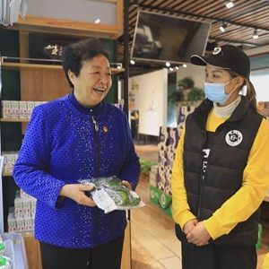王銀香與五里墩村有機食品體驗店的店員進(jìn)行交流。(受訪(fǎng)者供圖)