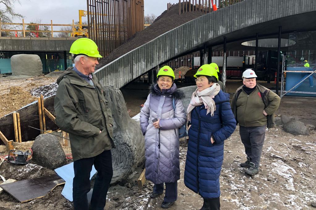 侯蓉(右二)到丹麥哥本哈根動(dòng)物園了解大熊貓獸舍的建設情況(資料照片)。新華社發(fā)(成都大熊貓繁育研究基地供圖)