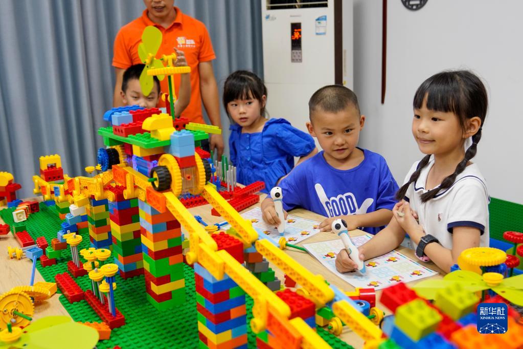 在重慶豐都縣高家鎮汶溪社區黨群服務(wù)中心內,幾名加入家庭教育互助會(huì )的孩子在體驗兒童機器人課程(2022年8月24日攝)。豐都縣的鄉村、社區家庭教育互助會(huì )致力于服務(wù)豐都外出務(wù)工家庭及留守兒童。新華社記者 劉潺 攝
