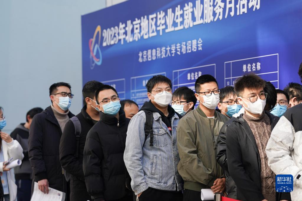在北京信息科技大學(xué),求職學(xué)生排隊等候進(jìn)入招聘會(huì )現場(chǎng)(2023年3月1日攝)。新華社記者 鞠煥宗 攝