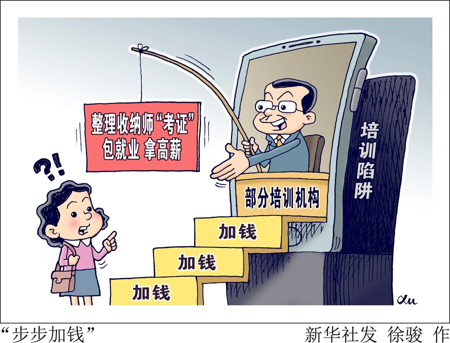 “學(xué)完立馬月入上萬(wàn)元”“頒發(fā)國家認可的職業(yè)證書(shū)”“有證即可包分配”……“新華視點(diǎn)”記者調查發(fā)現,當前,部分培訓機構打著(zhù)整理收納行業(yè)“有證才能上崗”的幌子,以“就業(yè)包分配”“輕松拿高薪”為誘餌,制造培訓陷阱,引發(fā)大量投訴糾紛。