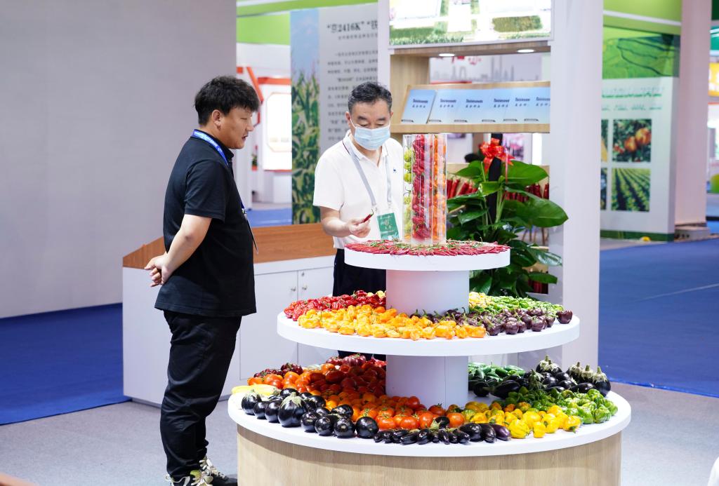 2023中國種子大會(huì )暨南繁硅谷論壇在海南三亞舉行。4月1日,與會(huì )者在參觀(guān)論壇展覽。新華社記者 樊雨晴 攝