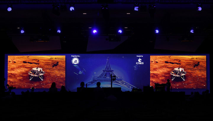 這是2022年9月21日在法國巴黎拍攝的天問(wèn)一號火星探測團隊成果介紹會(huì )現場(chǎng)。新華社記者 高靜 攝
