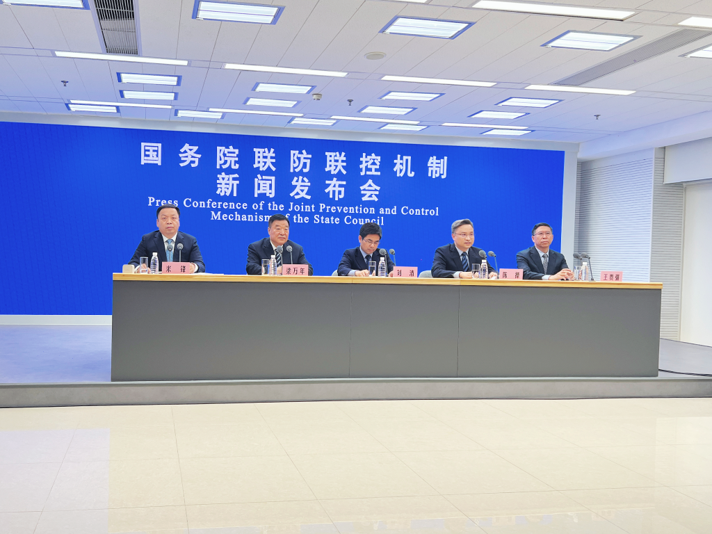 5月8日舉行的國務(wù)院聯(lián)防聯(lián)控機制新聞發(fā)布會(huì )現場(chǎng)。新華社記者顧天成 攝
