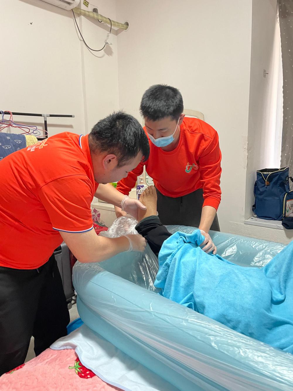 這樣的助浴服務(wù),晏楊俊祺已經(jīng)完成了200多次,每一次都是磨人的“大工程”。身為四川福樂(lè )家綜合養老服務(wù)有限責任公司的助浴師,上門(mén)服務(wù)前,他都要初步掌握老人病史、皮膚情況、血壓血糖、是否有自主活動(dòng)能力等基本信息,據此做好各項準備,同時(shí)發(fā)給老人家屬一些有關(guān)助浴流程和內容的視頻。服務(wù)時(shí),對于失能老人,助浴師還需分工協(xié)作,通常一人主要負責洗澡,一人負責陪老人說(shuō)話(huà)并觀(guān)察身體狀態(tài),還有一人負責換水、幫忙抬抱老人等,整個(gè)服務(wù)過(guò)程大約1個(gè)小時(shí)。