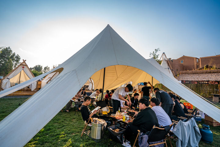 游人在滇池南岸晉寧區上蒜鎮小漁村露營(yíng)游玩(2023年4月27日攝)。新華社記者 胡超 攝
