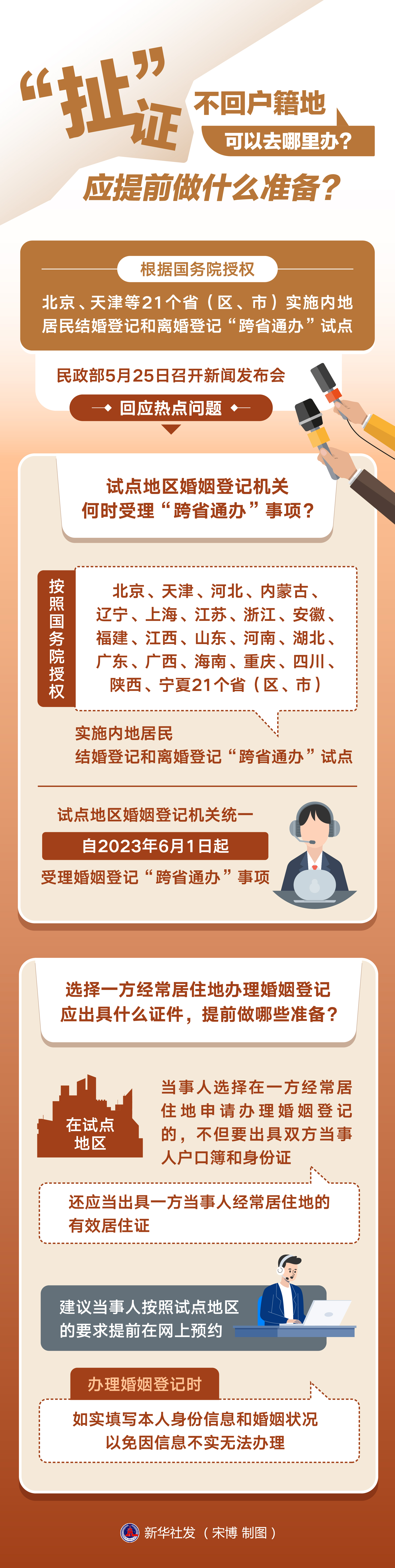 新華社北京5月25日電 題:“扯”證不回戶(hù)籍地,可以去哪里辦?應提前做什么準備?——聚焦我國擴大內地居民婚姻登記“跨省通辦”試點(diǎn)工作熱點(diǎn)問(wèn)題