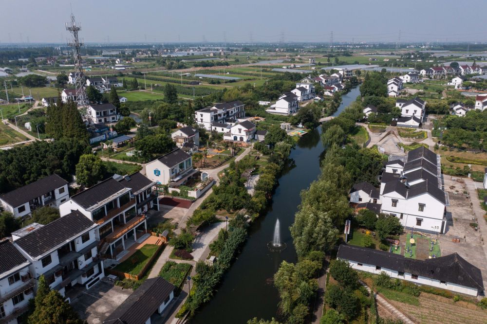 這是2021年7月12日拍攝的浙江省嘉善縣姚莊鎮橫港村(無(wú)人機照片)。新華社記者 徐昱 攝