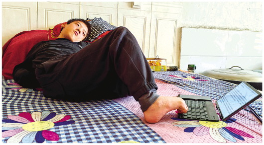 胡少杰在窯洞中寫(xiě)下的這些詩(shī)歌,如綠草紅花一般,在“荒蕪與繁盛之間,記錄了生命的成長(cháng)與倔強”。但對全身只有一只腳能自由活動(dòng)、夜深時(shí)經(jīng)?!熬米u鳴”的胡少杰而言,背后付出的辛酸和努力,卻是常人無(wú)法想象的。