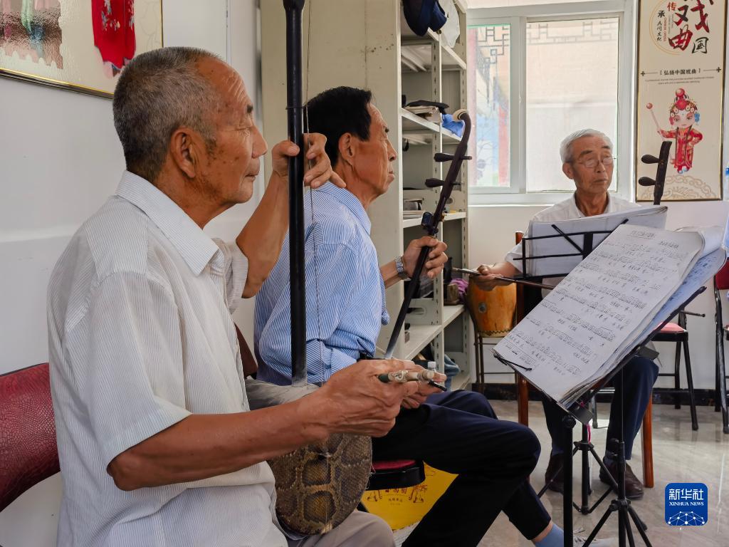 河北省灤平縣火斗山鎮拉海溝村評劇藝術(shù)團的成員在排練節目(7月5日攝,手機照片)。新華社記者 牟宇 攝