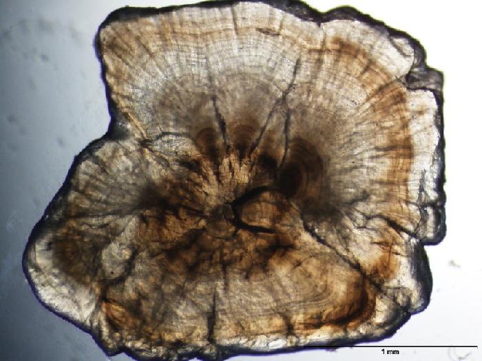 這是顯微鏡下的魚(yú)類(lèi)耳石剖面圖。(受訪(fǎng)者供圖)