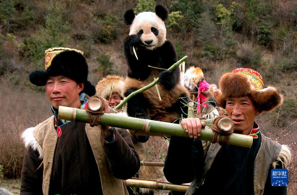 四川寶興縣村民與大熊貓和諧共處(資料照片)。新華社發(fā)(寶興縣委宣傳部供圖)