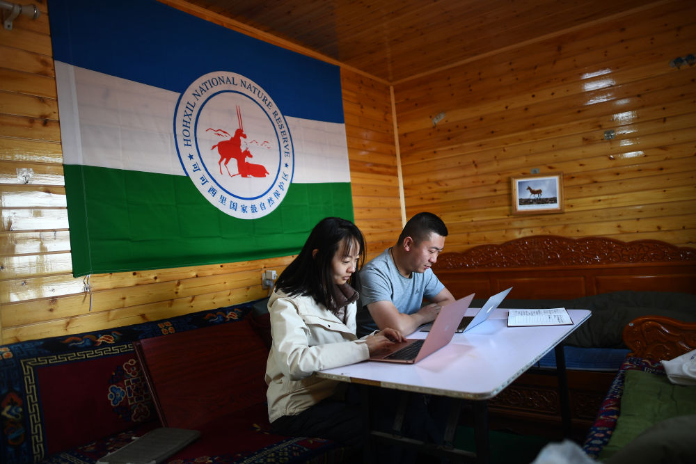 6月16日,王金金(左)在可可西里卓乃湖保護站出鏡。新華每日電訊記者 張宏祥 攝