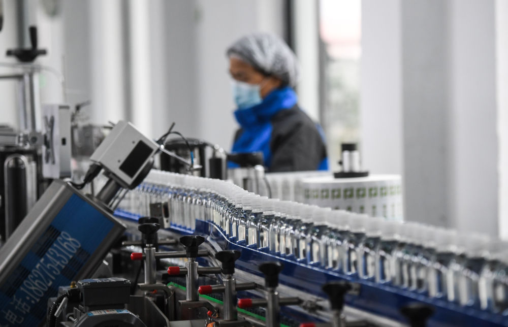 在浙江淳安經(jīng)濟開(kāi)發(fā)區一家水飲料企業(yè)拍攝的瓶裝水生產(chǎn)線(xiàn)(2020年12月8日攝)。新華社記者 徐昱 攝