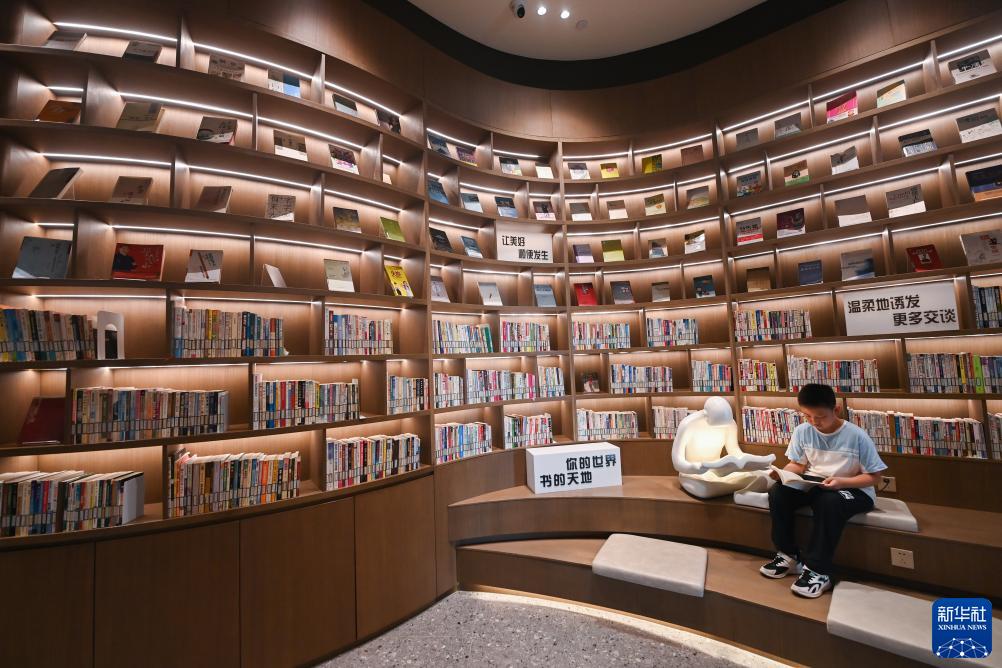 7月27日,小朋友在嘉興市南湖區余新鎮漁里未來(lái)社區“向日葵親子小屋”的天空書(shū)城里看書(shū)。新華社記者 徐昱 攝