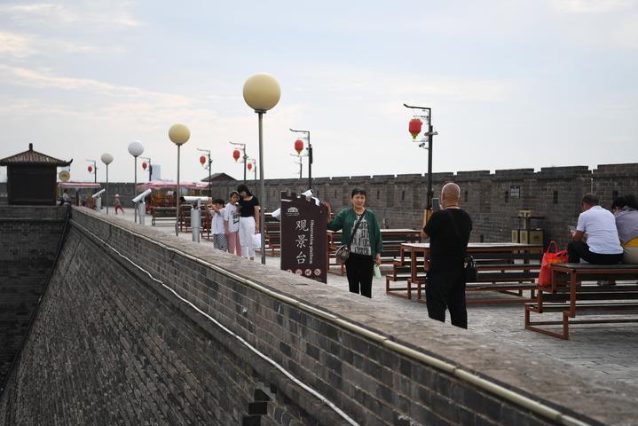 9月23日,游客在河北省石家莊市正定古城城墻上游覽。新華社記者 牟宇 攝