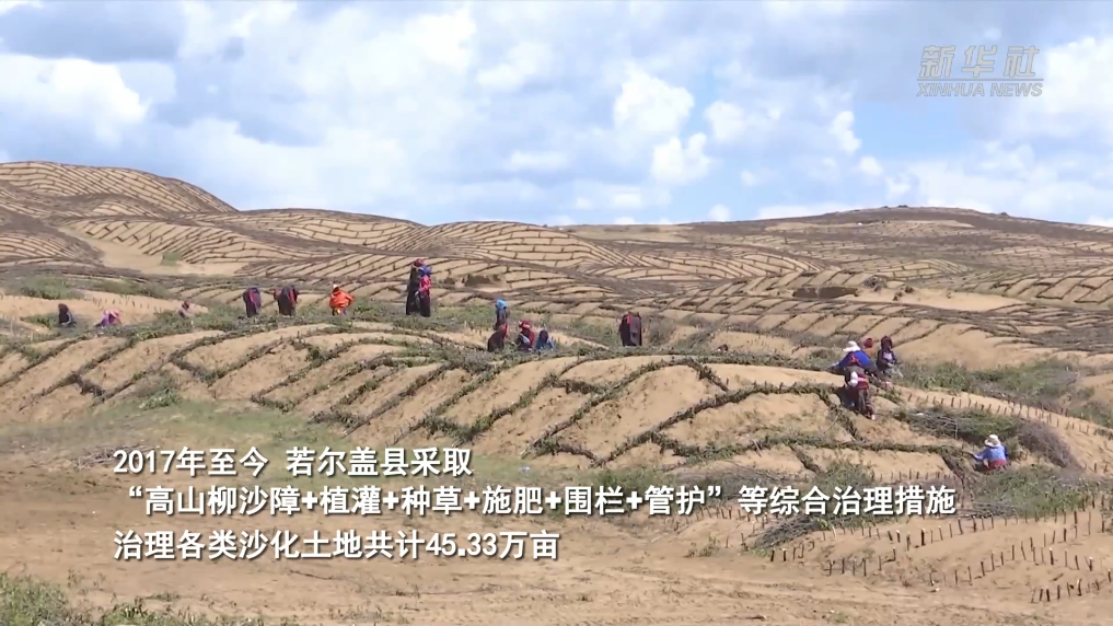 位于黃河上游的四川省阿壩州若爾蓋縣地處川西高原向青藏高原過(guò)渡地帶,曾因多種原因一度飽受“沙化”之苦。2017年至今,若爾蓋縣采取“高山柳沙障+植灌+種草+施肥+圍欄+管護”等綜合治理措施,治理各類(lèi)沙化土地共計45.33萬(wàn)畝,“編織”出一幅黃河邊沙化治理新畫(huà)卷。