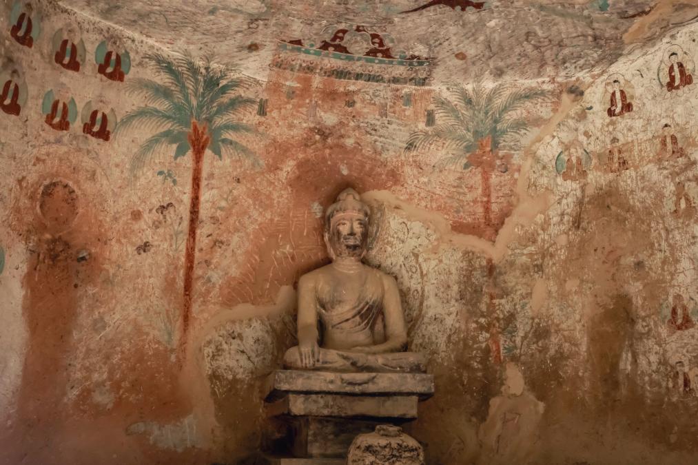 波紋發(fā)髻、高鼻深目……凝望第169窟中的佛像、壁畫(huà),來(lái)自古印度的犍陀羅藝術(shù)、秣菟羅藝術(shù)風(fēng)格濃郁。楊彩霞說(shuō),1600多年前,西秦工匠用高超的手藝,刻畫(huà)出佛教沿著(zhù)絲路東傳進(jìn)入內地時(shí)的最初樣貌。