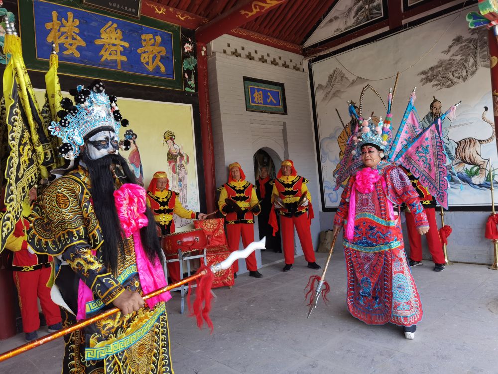 在位于黃河邊的山西臨猗縣古戲臺上,王午村十幾名村民化著(zhù)戲妝、穿著(zhù)戲服,正在演唱“鑼鼓雜戲”《三英戰呂布》。短短二三十分鐘,贏(yíng)得臺下觀(guān)眾陣陣掌聲。