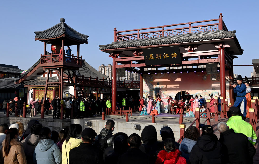 這是西安大唐芙蓉園內的西安鼓樂(lè )演出(2023年1月24日攝)。新華社記者 劉瀟 攝