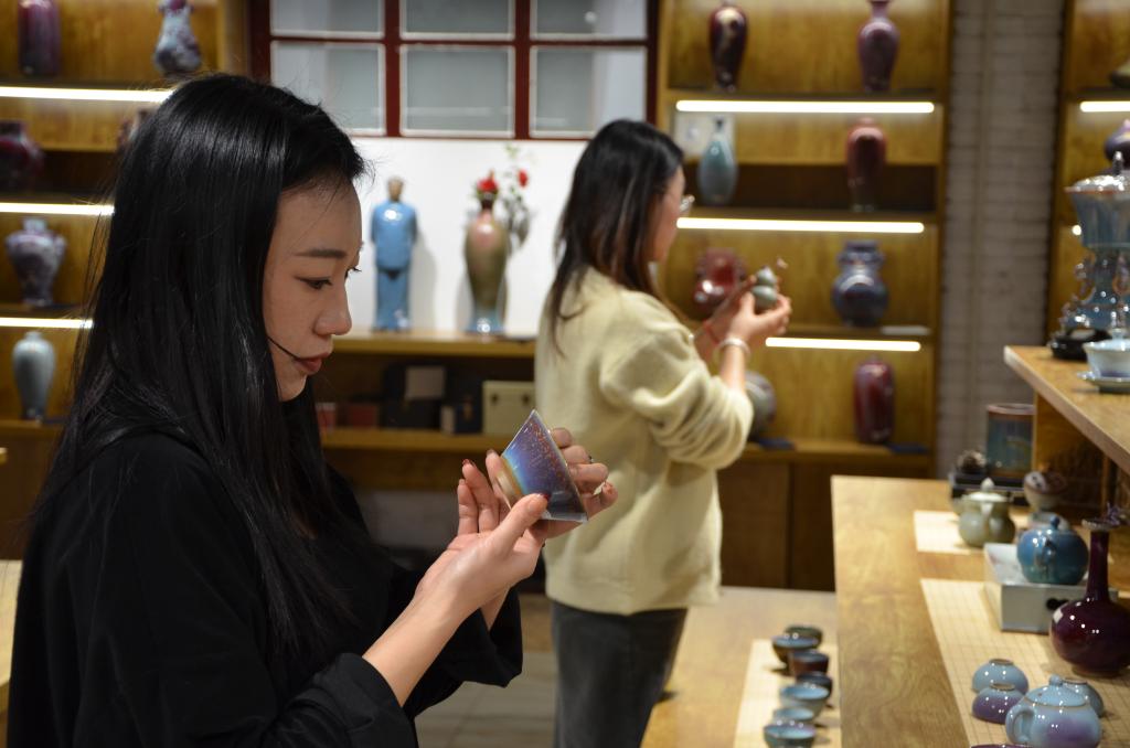 游客來(lái)到鈞瓷工業(yè)文化園,可以在鈞瓷技藝傳習館體驗鈞瓷制作過(guò)程,在神垕老食堂品嘗當地特色美食,還可以到文創(chuàng )商店挑選一件喜歡的鈞瓷小器帶回家?!拔覀兿M慰驮诖烁惺茆x瓷工藝的歷史傳承,沉浸式體驗鈞瓷文化?!眻@區相關(guān)負責人介紹。