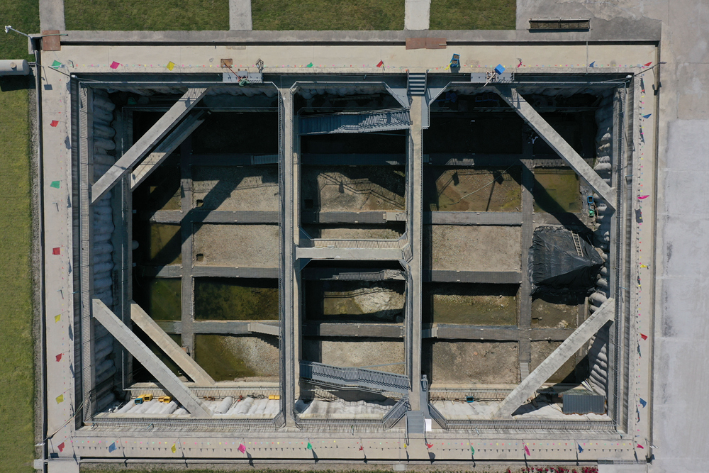 2023年11月3日在余姚市拍攝的井頭山遺址發(fā)掘現場(chǎng)(無(wú)人機照片)。新華社記者 黃宗治 攝